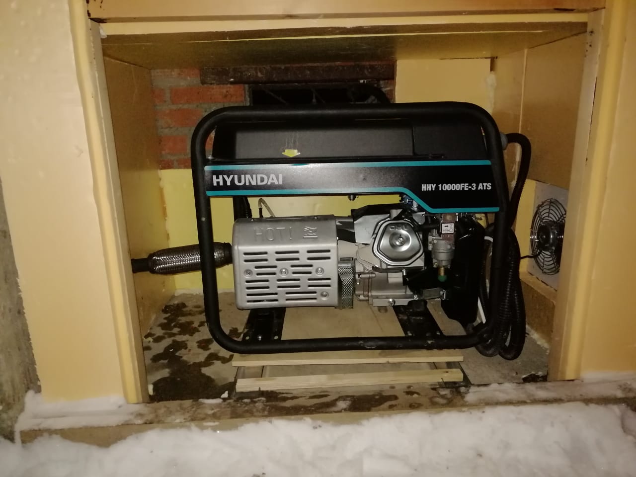 Клиенту установлен бензиновый генератор HYUNDAI HHY 10000FE-3 ATS , блок автоматики "АВР Блок 3 Ф 63 А" , а также организована приточная вентиляция и система отвода выхлопных газов.