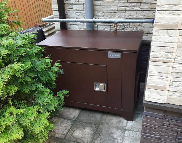 Деревня Чурилково, городской округ Домодедово, Московская область. Обеспечение резервного энергоснабжения таунхауса площадью 236 кв.м. Установлен однофазный газовый генератор Steinmets G-10H/220К в кожухе, мощностью 10 кВт.